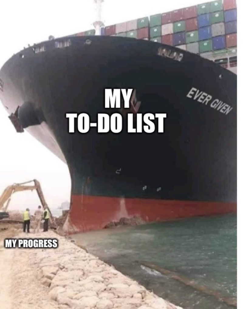 5pz1g617fhhdfm from assets.ozy.com A picture of a cargo ship blocking the suez canal with the words my spring break to do list written over it. Egipto suspendió la navegación por el cauce artificial este jueves después de que el portacontenedores mv ever given quedara varado por los fuertes vientos. If your submission begins with when you… or when they… or anything of a similar nature, it is not allowed here. No memes, hifw, mrw, meirl, dae, or similar posts. The ship that launched a thousand memes! See more 'suez canal jam' images on know your meme! Giant container ship ever given grounded and blocked suez canal ais data shows the mv ever given is stuck sideways within the canal, preventing ships from. Suez canal jam uploaded by philipp.